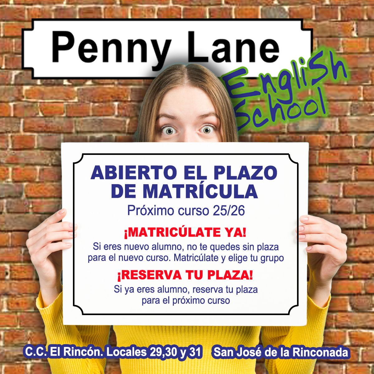 ¡Ya está abierto el plazo de matrícula para el curso 2025/2026 en Penny Lane English School. Clases para todas las edades, nuevos grupos, preparación de exámenes oficiales y muchas novedades Nuestro método se adapta a